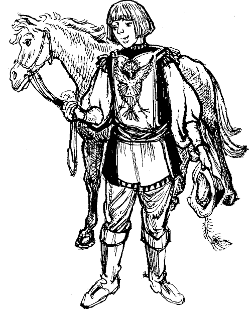 With him there was his son, a young squire. He was a man of romantic nature but he was still a marry bachelor. He had curly hair which seemed to have been pressed in a curling iron. I think his age was about twenty. He was a man of average height. He was wonderful active and strong. He had been out on a military expedition in Flanders. Artois and picardy, where he had conducted himself well in so short a time, hoping to win the favour of his beloved. He wore a garment and embroidered, that it appeared to be a meadow full of fresh as is the month of May. He wore a short gown with long and wide sleeves. He could sit on the horse and ride fairly. He could compose and recite songs. He could engage in combat and also dance, draw and write well. He was so passionate a lover that at the time of night, he sleep no more than a nightingale. He was courteous humble and serviceable, and he curved before his father at the table.